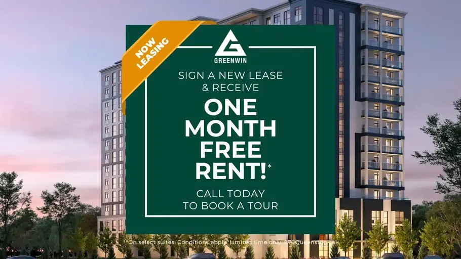 -------------Get 1 month free on new leases signed before October 1st, 2024. On select suites for a limited timeCommunity AmenitiesKeyless entryUnderground parkingVisitor parkingElevatorsOn-site staffLaundry facilitiesFitness roomStorage lockersWheelchair AccessExercise roomAssigned ParkingOn-Site Professional StaffGarage with bike rackWheelchair AccessSecurity CamerasGeo-thermal Heating and Cooling*Smart parcel lockersBike storage roomWIFI AvailableElectric vehicle (EV) charging stallsSuite AmenitiesAir conditionerFridgeStoveWasher in suiteDishwasher availableCeramic floorsHardwood floorsEnsuite bathroomIndividual thermostatsCity viewsWalk-in closetsDryer in suiteMicrowaveCentral air conditioningModern Appliances and Island(sits 4)Efficient Natural Gas HeatingHeating & Air ConditioningBalconiesBrand New SuitesWi-Fi IncludedIndividual climate control including ACHeating and CoolingUtilities IncludedHeatAboutIn the heart of Stoney Creek, where the city's industrial soul meets the rhythm of urban life, lies a place for those who dare to dream. Here, we believe that space is more than just square footage – it's where you can build a vibrant life that you’re proud of. Our spacious suites offer the room you need to think, grow, and thrive. Step outside, and you'll discover a city brimming with opportunities for self discovery and adventure. From an artistic culture and bustling neighborhoods to a breathtaking city of waterfalls and scenic hiking trails, Stoney Creek provides the backdrop for crafting the life you've always wanted.Step into 870 Queenston, where we’ve set up the perfect space for your life to bloom.