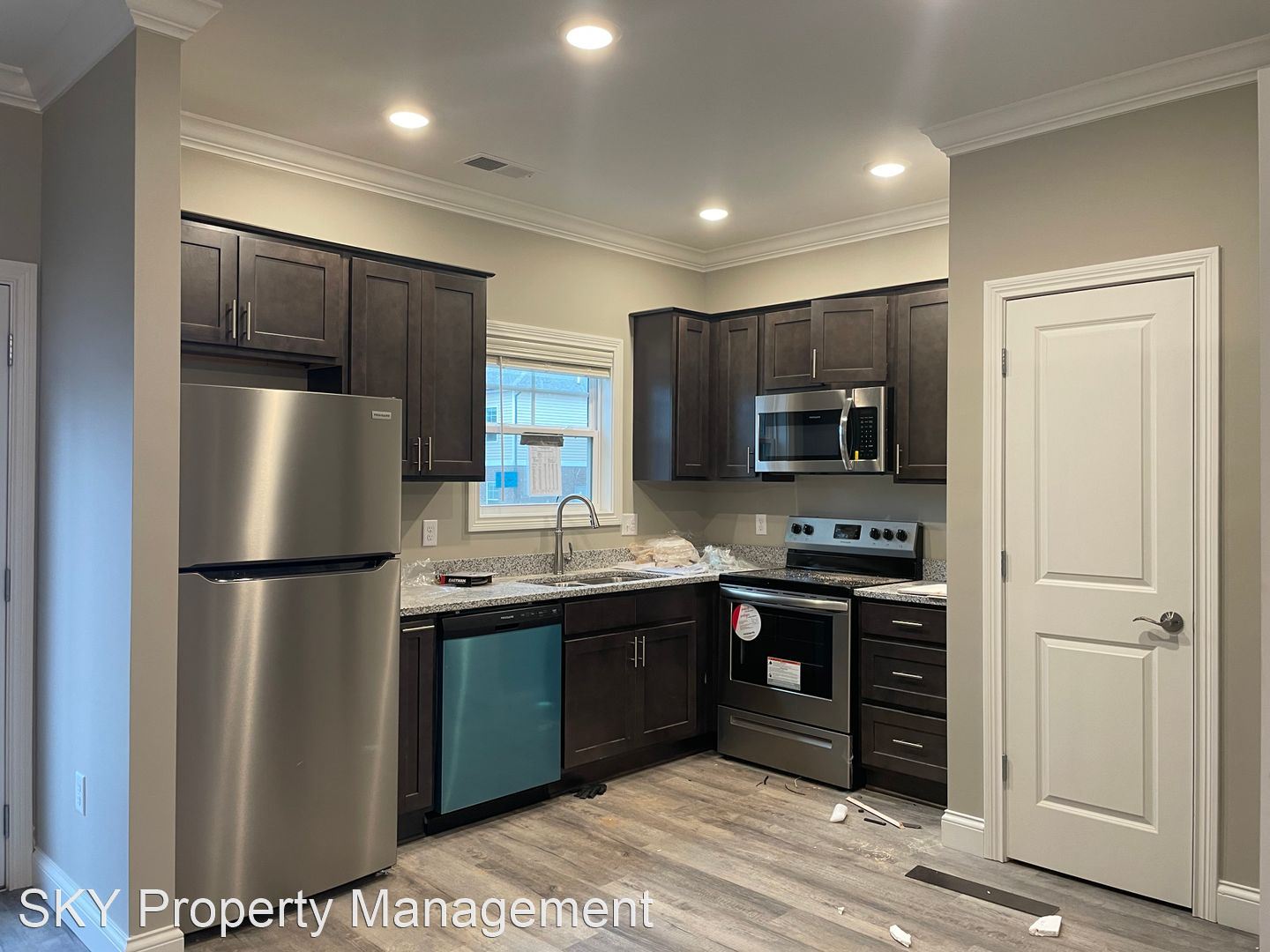 The Flats - Second-Floor Open Concept Flat Stainless Steel Kitchen Appliances Granite Counters Side by Side Washer and Dryer Connection Hardwood Laminate Throughout Patio with Outdoor Storage Closet